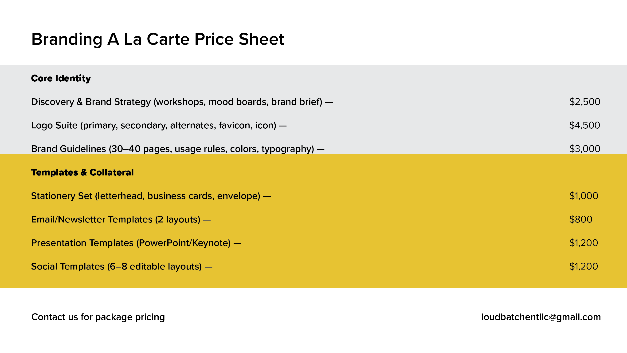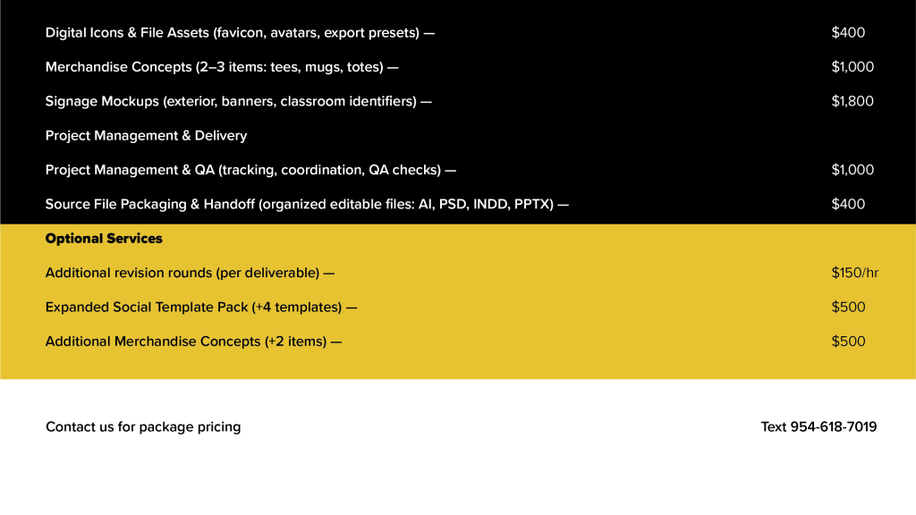 A La Cart pricing below. Contact us for customized package pricing